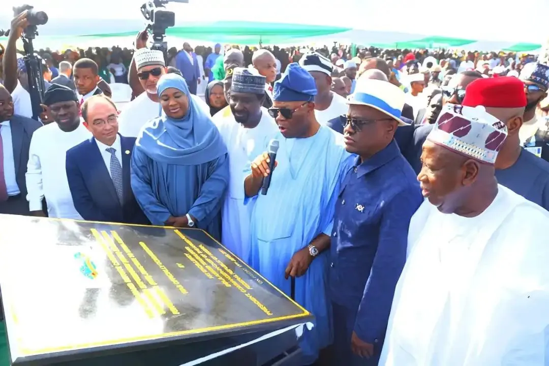 尼日利亞總統提努布為我司承建的阿布賈大供水項目竣工儀式剪彩,現場以中文致謝!